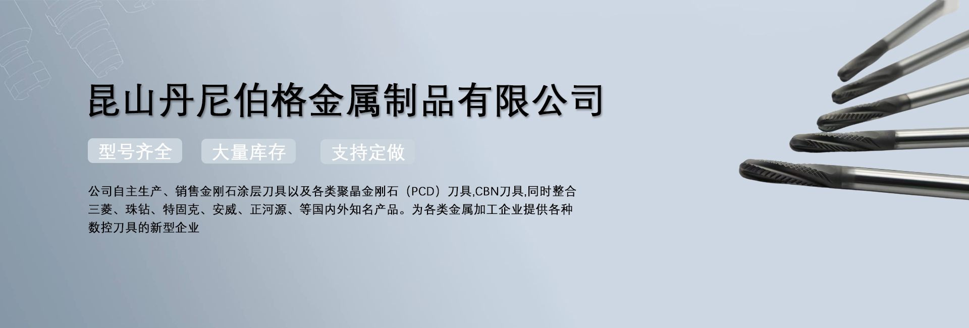 昆山丹尼伯格金屬制品有限公司是一家專注于數控非標刀具、高硬度刀具于一體的金屬切削工具的企業。公司自主生產、銷售金剛石涂層刀具以及各類聚晶金剛石(PCD)刀具,CBN刀具,同時整合三菱、珠鉆、特固克、安...